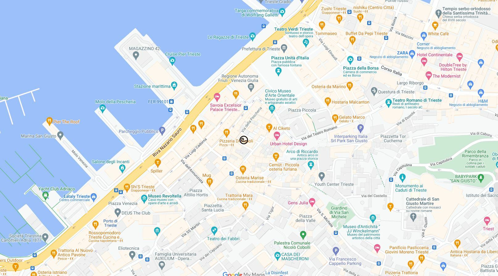 che è proprio dietro Piazza Unità d’Italia, nella rinnovata zona di “Cavana”.